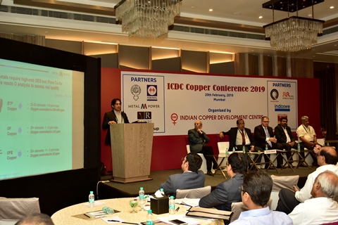 Organised by “India has tremendous growth potential in the usage of copper” mentioned Mr. Arun Kumar Shukla, Director (Operations), Hindustan Copper Ltd. while delivering his inaugural address during “ICDC Copper Conference 2019” organized by Indian Copper Development Centre (ICDC) in Mumbai on 20th February, 2019. He also mentioned about the indispensability of copper in various applications and future plan of Hindustan Copper Ltd. for increase in production capacity. Mr. U. K. Jatia, Managing Director, Indoswe Engineers Pvt. Ltd., Pune, welcomed the participants and Mr., D. K. Jain, Managing Director, Agrawal Metal Works Pvt. Ltd., Rewari, also addressed the participants. Both of them highlighted the commendable role played by ICDC for the last 53 years towards development of Indian copper and copper alloy industry. Both Mr. Jatia and Mr. Jain being Members of the Board of Management of ICDC and associated with the Centre for more than four decades, requested the participants of the Conference to support ICDC for the benefit of the copper based industryin the country. The inaugural session concluded with Vote of Thanks proposed by Dr. D. De Sarkar, Chief Executive Officer, ICDC. The Plenary Session was conducted by Mr. U. K. Jatia. During this session, the status of the Indian copper industry – right from primary producers to downstream industries, was covered by senior representatives of these industries. The