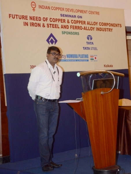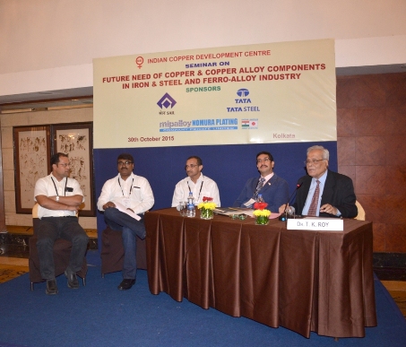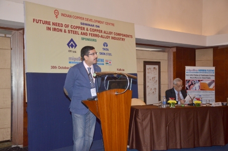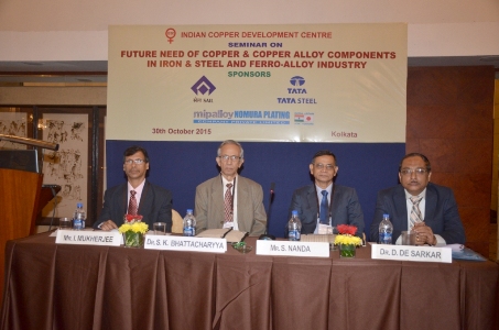 Indian Copper Development Centre (ICDC) organized the seminar on “Future Need of Copper & Copper Alloy Components in Iron & Steel and Ferro-Alloy Industry” in Kolkata on 30th October, 2015. More than 50 participants attended the programme. They participated from various parts of the country and represented iron & steel industry, suppliers of copper based components to the iron & steel industry, primary copper producers, Research & Development Centres, consultants, academic institutions, laboratories, traders, etc.